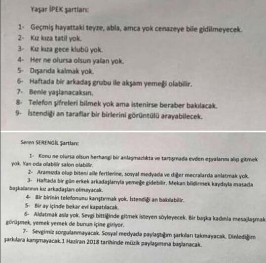 Seren Serengil ve Yaşar İpek’in barışma sözleşmesi
