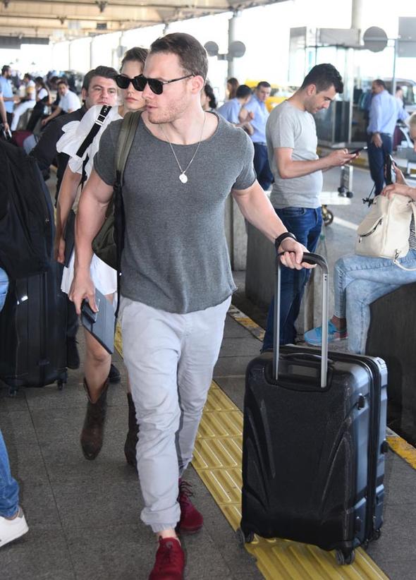 Havaalanı girişinde objektife yansıyan çiftin keyifsiz halleri gözden kaçmadı…