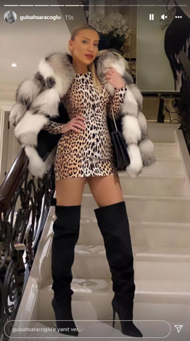 39 yaşındaki ünlü modacı, siyah uzun çizmelerini leopar desenli mini bir elbiseyle tamamlayan bir kürk manto da giydi. Saraçoğlu’nun yayımladığı bu fotoğraf takipçileri tarafından sosyal medyada çok eleştirildi.