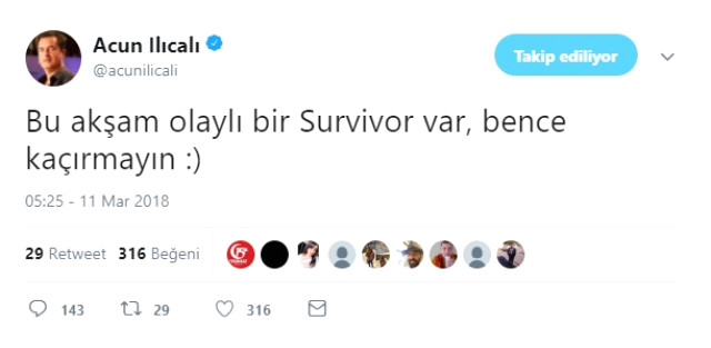 Acun, Twitter’dan Duyurdu: Survivor’ın Bu Akşamki Bölümünde Olay Çıkacak