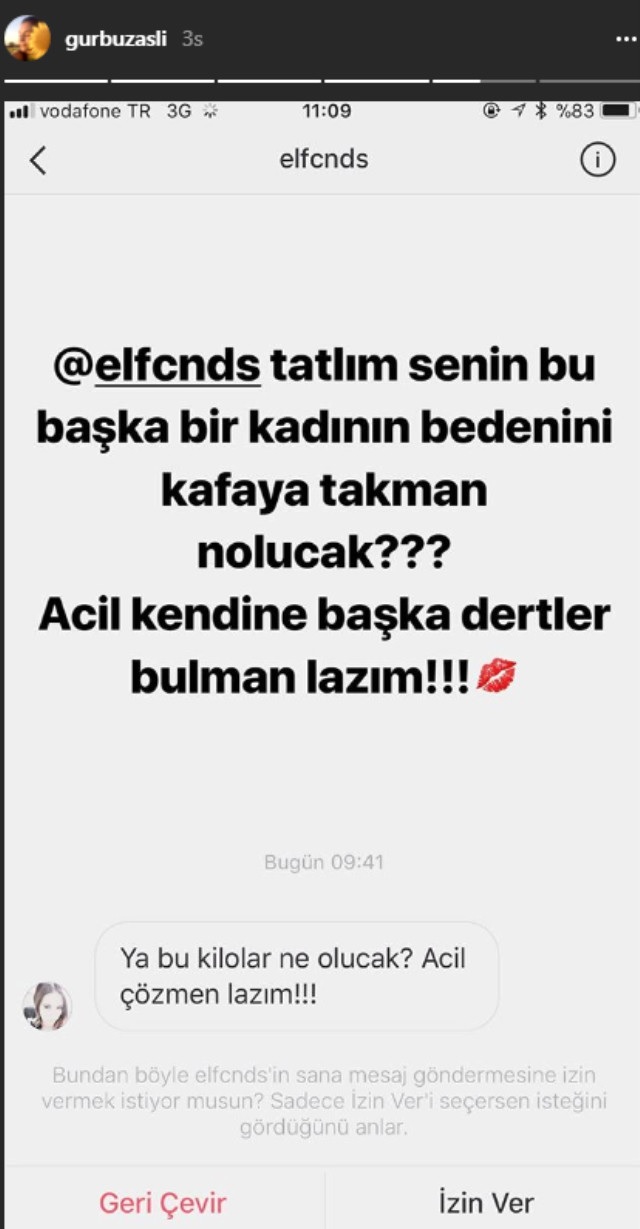 Aslıhan Gürbüz’ün bir takipçisi, sosyal medyada “Ya bu kilolar ne olacak? Acil çözmen lazım” diye bir yorumda bulundu. Gürbüz, takipçisine “Acil kendine başka dertler bulman lazım. Tatlım senin bu başka bir kadının bedenini kafaya takman ne olacak?” diye yanıt verdi.