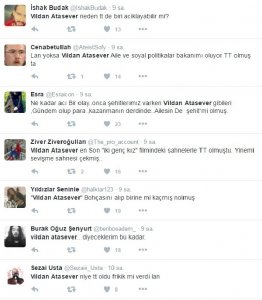 Altın Portakal ödüllü ünlü oyuncu Vildan Atasever, sosyal medyada TT oldu. Atasever’in hayranları, ünlü oyuncunun TT olması karşısında meraklandı. Sosyal medya kullanıcıları, Vildan Atasever’in neden TT olduğunu merak ederek “Neden Tt de biri açıklayabilir mi”, “Lan yoksa Vildan Atasever Aile ve sosyal politikalar bakanımı oluyor TT olmuş”, “Bohçasını alıp birine mi kaçmış” şeklinde yorumlarda bulundular.İşte o yorumlardan bazıları;