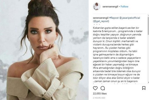 “Kıskanılan, gıpta edilen, başarılı, sevilen bir kadınla evleniyorum… Programında o kadar doğru tespitler yapıyor, doğrunun yanında, yanlışın da karşısında o kadar adaletli duruyor ki, onun kişilikli, merhametli ve vicdanlı duruşuna, ben de herkes gibi hayranım… Bu yüzden herkes gibi programının müptelası oldum… Ha tabii işine gelmeyenlerin de düşmanlığını kazanıyor belki ama o sadece yaşayanların yaşadıklarını yorumladığından başını öne eğecek bir haber yapmadığı ve kimseye iftira atmadığından doğru bildiğinin arkasında bedel bile ödemek olsa duruyor. O yüzden ne kimseye boyun eğiyor ne de özür diliyor. Alsa alsa Gönül alıyor o kadar… Zaman zaman onun şu an ki başarısını hazmedemeyen şahıslar olabiliyor, onların yakınları da konuya dahil olabiliyorlar ama erkek adam kadın işine karışmaz! O yüzden şimdilik olup biteni ve Sero’mun, başarısını uzaktan gururla izliyorum.” Açıklamasını yaptı.