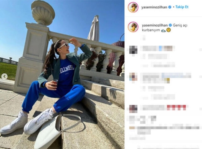 Sosyal medyayı sık kullanan isimler arasında olan Yasemin Özilhan bugün sabah saatlerinde sosyal medya hesabından bir fotoğraf yayımladı. Merdivende otururken çekilen karelerini takipçilerinin beğenisine sunan Yasemin Özilhan, ayaklarının olduğundan büyük görünmesini tiye aldı. Çay içerken poz verdiği görülen sosyetik güzel, “Geniş açı kurbanıyım” notunu düştüğü eğlenceli gönderisi ile yaklaşık 40 bin beğeni ve çok sayıda yorum aldı.