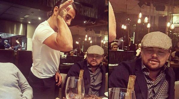 Nusret Gökçe, Oscar ödüllü oyuncu Leonardo Di Caprio’ya yemek servisi yaptı.