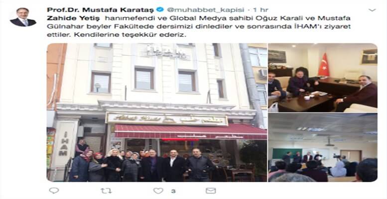 Sosyal medyadaki tepkilerin ardından Mustafa Karataş, sosyal medya hesabından tepkileri görmezden gelerek, Zahide Yetiş’in üniversiteyi ziyaret ettiğini duyurdu. Mustafa Karataş, sosyal medya hesabından 4 fotoğrafı “Zahide Yetiş hanımefendi ve Global Medya sahibi Oğuz Karali ve Mustafa Gülnahar beyler Fakültede dersimizi dinlediler ve sonrasında İHAM’ı ziyaret ettiler. Kendilerine teşekkür ederiz.” notuyla paylaştı.